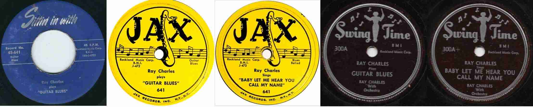 [Note: "Baby Let Me Call Your Name" and "Guitar Blues" were sold or leased to Jack Lauderdale's Swing Time Records in Los Angeles. Since the publisher is Rockland Music Corp., used by the Shads, it indicates that Sittin' In With was the original label for the tunes. They also came out on the Shads' Jax label with the same record number. No one knows who the guitar player was on "Guitar Blues". It certainly wasn't Ray Charles, who didn't play the guitar, but his is the only name on the label. It looks like Ray was sneaking in some recording, since Atlantic Records had purchased his contract from Jack Lauderdale in February 1952; his first Atlantic session wouldn't be until November.]