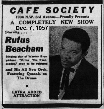 On May June 1, 1957, "Rufus Beacham's Orchestra" played at the first Negro Policeman's Ball at the Sunrise Clover Club in Fort Lauderdale.