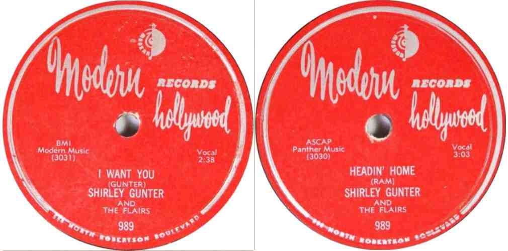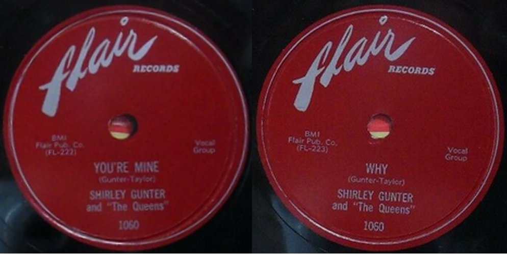 Shirley Gunter, frequently misspelled "Gunther", was a fixture on the California music scene for a couple of years. Her group, the Queens, has been called the first successful female group (take that, Andrews Sisters!).