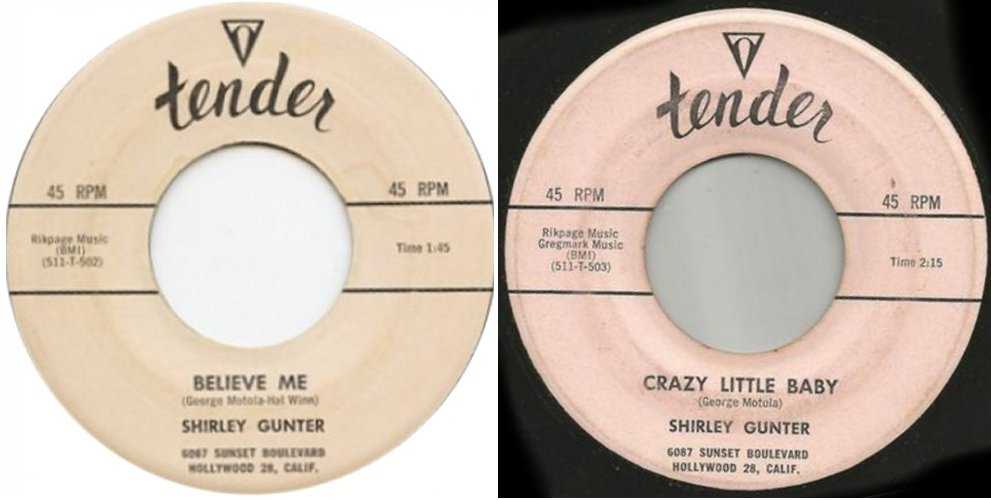 Shirley didn't record again until 1958, when she did "Believe Me" (with a chorus), backed with "Crazy Little Baby". They were released on Tender in May and "Believe Me" (with its Jesse Belvin-Shields flavor) certainly sounds like something that would have been recorded for Tender, but it wasn't. There was an article in the June 7, 1958 Cash Box that was titled "Tender Buys 2 Masters":