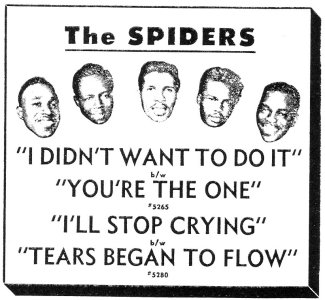 In the early days of the Spiders, most of their material was written by tenor and guitarist Adolph Smith (a member of the Monitors), including "I Didn't Want To Do It," "You're The One," "Walking Around In Circles" and "I'll Stop Crying." Smith would also rehearse the group, but he wasn't a member of the Spiders and didn't appear with them.