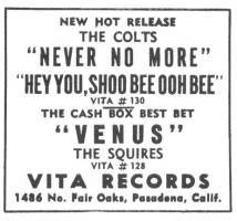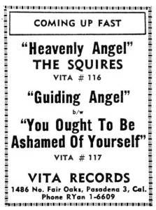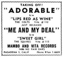 At this point, Larry Mead had second thoughts about the name of his label. While Mambo had been named to take advantage of the mambo craze of the mid-50s, there was always the nagging suspicion that the distributors might pass it by, thinking it was a Latin music label instead of one specializing in R&B. Therefore, exit "Mambo" and enter "Vita," which would be the Squires' home for their next five releases.
