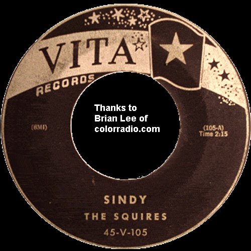 "Sindy" did so well, in fact, that it became Al Jarvis' Command Performance recording for two weeks (Jarvis is the DJ who's actually credited with pushing it into hit status; he once played it six times in a row). However, when it was reviewed on July 9, it was only ranked "good." Other reviews that week went to the Emeralds' "It's Written In The Stars," the Harptones' "Life Is But A Dream," the Platters' "Only You," Piano Red's "Red's Boogie," the Sonics' "As I Live On," and the Griffins' "Scheming." That same day, the Squires appeared on Jarvis' TV show, Holiday Hi-Jinks.
