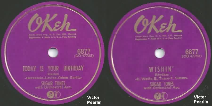 On April 7, 1952, the Sugar Tones recorded another four songs for Okeh: "Wishin'", "Today Is Your Birthday" (a reprise of their Onyx tune), "I Know You Gotta Go", and "Cancel The Flowers".