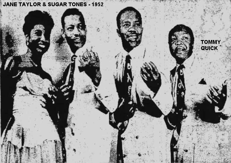 Not long after this, however, Mitch Mitchell left the group, to be replaced by Jane Taylor. Jane, the oldest of four sisters (born January 23, 1926), was from Beckley, West Virginia and had come to New York to seek her singing fortune. How she met the 4 Blades is unknown, but she probably saw them perform. Jane took over lead chores, and the "4 Blades" became the "Sugar Tones".