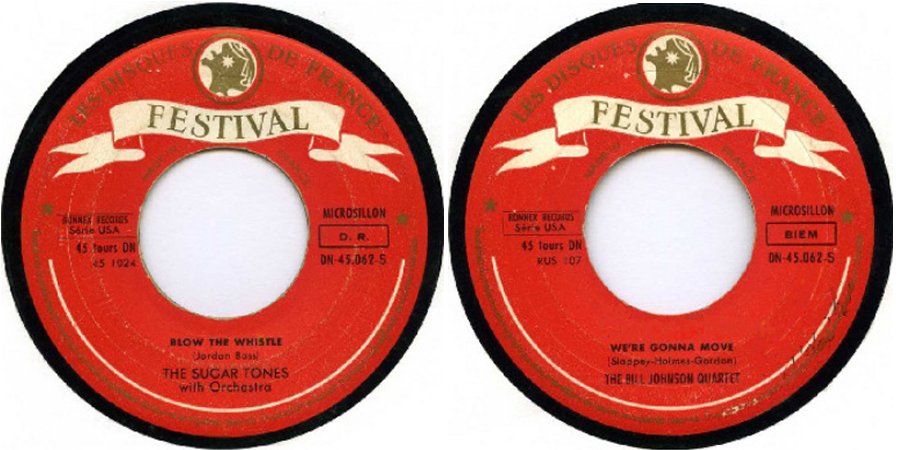 1077 Blow The Whistle [as the "Sugartones"] / [We're Gonna Move - Bill Johnson] - ca 55
