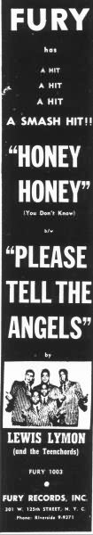 Fury released "Honey, Honey" and "Please Tell The Angels" in March, and "Honey, Honey" received an "excellent" rating the week of April 6. Other reviews that week went to Clyde McPhatter's "Just To Hold My Hand", Bo Diddley's "Hey, Bo Diddley", the 5 Royales' "Tears Of Joy", Don & Dewey's "Jungle Hop", and the Matadors' "Vengeance".