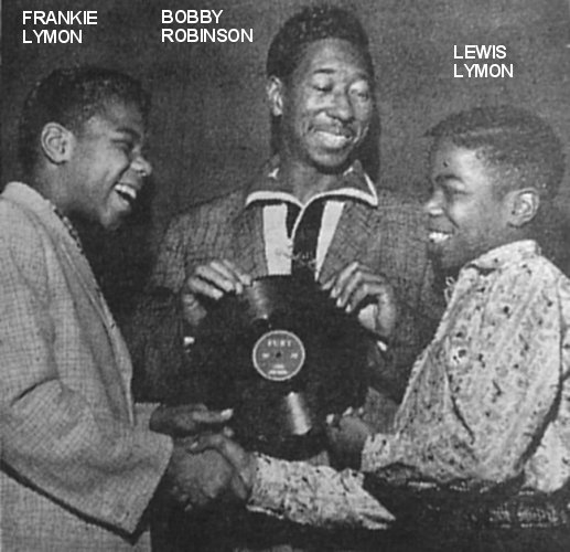 The day of the audition, however, the Teenchords, with Ralph in tow, went to the Apollo Theater to see the Teenagers perform (this would have been sometime during the week of June 8). After having walked the two miles from 165th Street to 125th Street, they were hanging out behind the theater, when all of a sudden, Charles Sampson (lead of the Red Robin Velvets and a friend of Ralph's) wandered by. Sampson mentioned that Bobby Robinson (who owned Red Robin) was looking for acts to record and manage. Were these guys Ralph's group? Well, you don't let a chance like that go by, and suddenly Ralph, without having sung a note for his audition, was touted by Lyndon as their new first tenor.