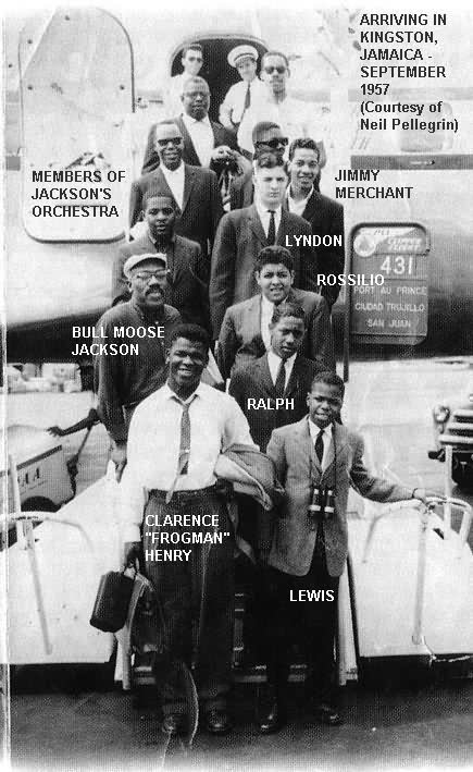 In September 1957, the guys went on a ten-day tour of the British West Indies with Clarence "Frogman" Henry and Bull Moose Jackson. Because David Little was no longer there, the Teenchords ended up "borrowing" Jimmy Merchant of the Teenagers. (Since Frankie Lymon had recently split with his group, the Teenagers had some time on their hands.) Although Jimmy was the Teenagers' first tenor, he could also sing bass, which was just what the Teenchords needed. (Possibly more to the point, he could fit into David Little's uniform, which is something the Teenagers' tall bass, Sherman Garnes, couldn't do.)