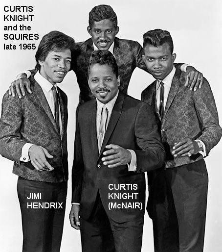 By 1965, Curtis McNair had changed his name to Curtis Knight and formed a band called the Squires. In late October of that year, he hired Jimmy James, a backup guitarist who'd recently been fired by Little Richard. James only stayed about three months before leaving to go with King Curtis' band (although he made several recordings with the Squires). In the fall of 1966, he went to England and changed his name: to "Jimi Hendrix." Hendrix and Knight would team up again, briefly, on a couple of occasions in the future, during Hendrix's dizzying career. Curtis McNair/Knight, who wrote "Jimi: An Intimate Biography Of Jimi Hendrix" in 1974, died in 1999. [For whatever it's worth, I was so isolated from current music in the 60s that I never heard of Jimi Hendrix until years after he'd died.]