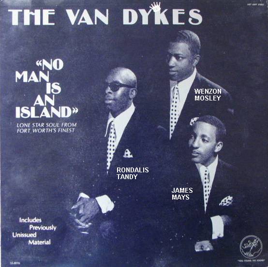 When the Van Dykes started playing talent shows at Fort Worth's Araby Night Club, they were introduced to Charles Stewart, who would eventually become producer for all their sessions. Their first record, "No Man Is an Island", backed with "I Won't Hold It Against You", was initially issued on Stewart's Hue-CSP label sometime in 1965. Like so many other Van Dykes songs, both sides were originals written by Tandy.