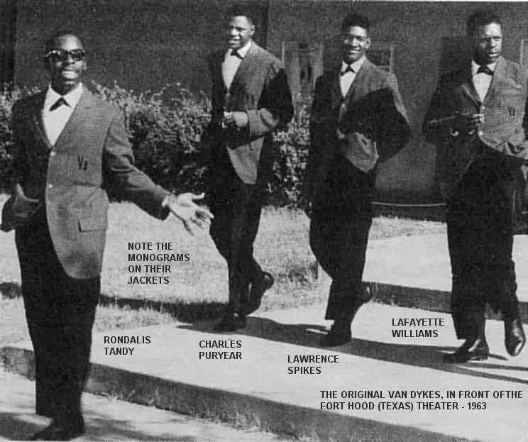 The story of the Van Dykes started in the early 60s, when Rondalis Tandy was stationed with the Army at Fort Hood, Texas. There, he formed the Van Dykes, a quartet (including Charles Puryear, Lafayette Williams, and Lawrence Spikes) whose repertoire consisted primarily of street-corner harmonies. Tandy decided that after his service days were over he would form a new group and continue to carry on the Van Dykes name professionally.