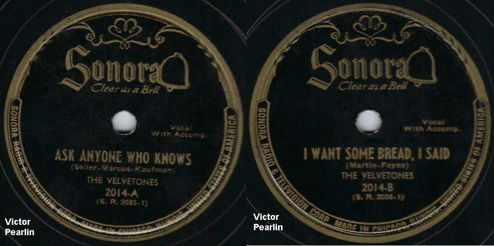 There have been several groups called the Velvetones over the years. Probably the finest of these recorded for Coronet and Sonora in the mid- to late 40s.