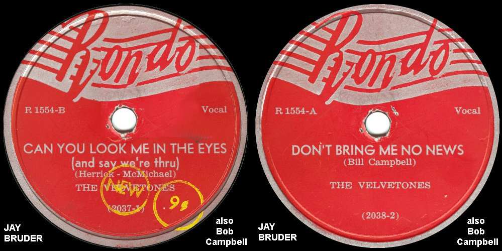 "Can You Look Me In The Eyes"? had been recorded by the King Cole Trio in December 1946, but wasn't released until June 1947. This makes the Velvetones version the first to come out. The Ink Spots also released their version in June, and Hadda Brooks did the song in 1950. "Ask Anyone Who Knows" was also done by the 4 Vagabonds in April, and by the Ink Spots in June. (Note that both sides of the Ink Spots' June release, therefore, contained songs that had been done by the Velvetones.) Others who'd recorded the song by June were Margaret Whiting, Dinah Shore, Eddy Howard, Anita Ellis, Sammy Kaye, and Kate Smith.