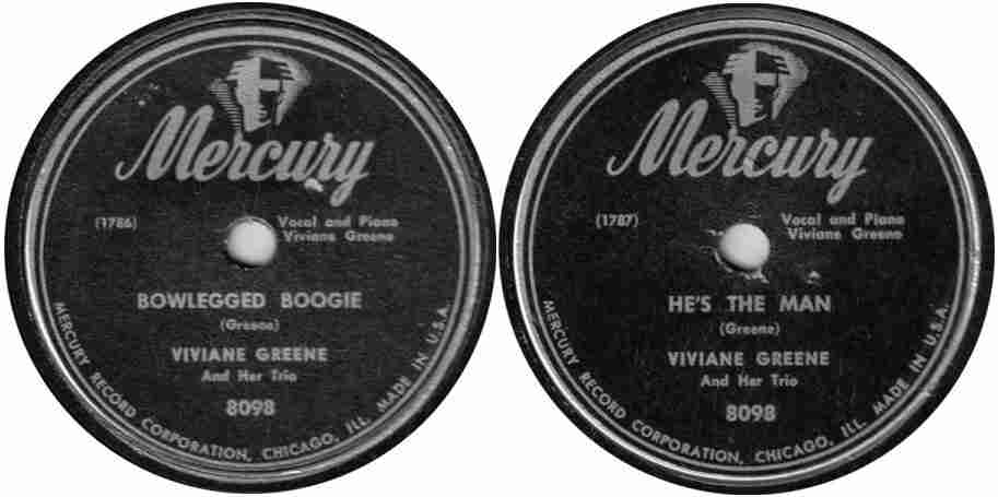 About Viviane Greene and her Trilon recording of these two tunes, the West Coast hucksters are saying she has "the greatest left hand in boogie."