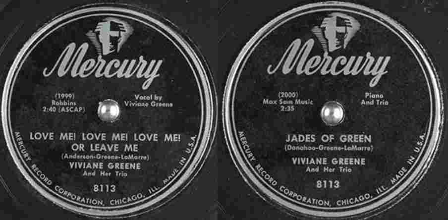 More interestingly, the July 17 Cash Box noted "Viviane Greene, former Trilon recording star, has just been signed to an exclusive contract with Mercury. This is in line with Mercury's enlargement of their race catalog." That is, Trilon had gone out of business and Mercury had bought all their masters, including Viviane's.