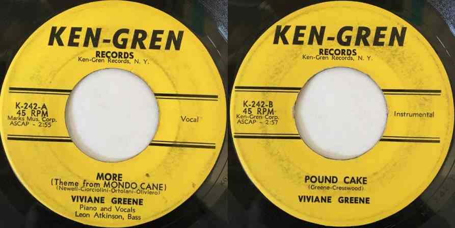 Viviane Greene was one heck of a pianist, which most of her recordings will attest to. However, she'll never be one of my favorite singers. She slips into falsetto at odd intervals and, to me, that isn't very attractive. On top of that, her recordings are mostly in the "supper club" genre, which explains why she was so popular at those venues.